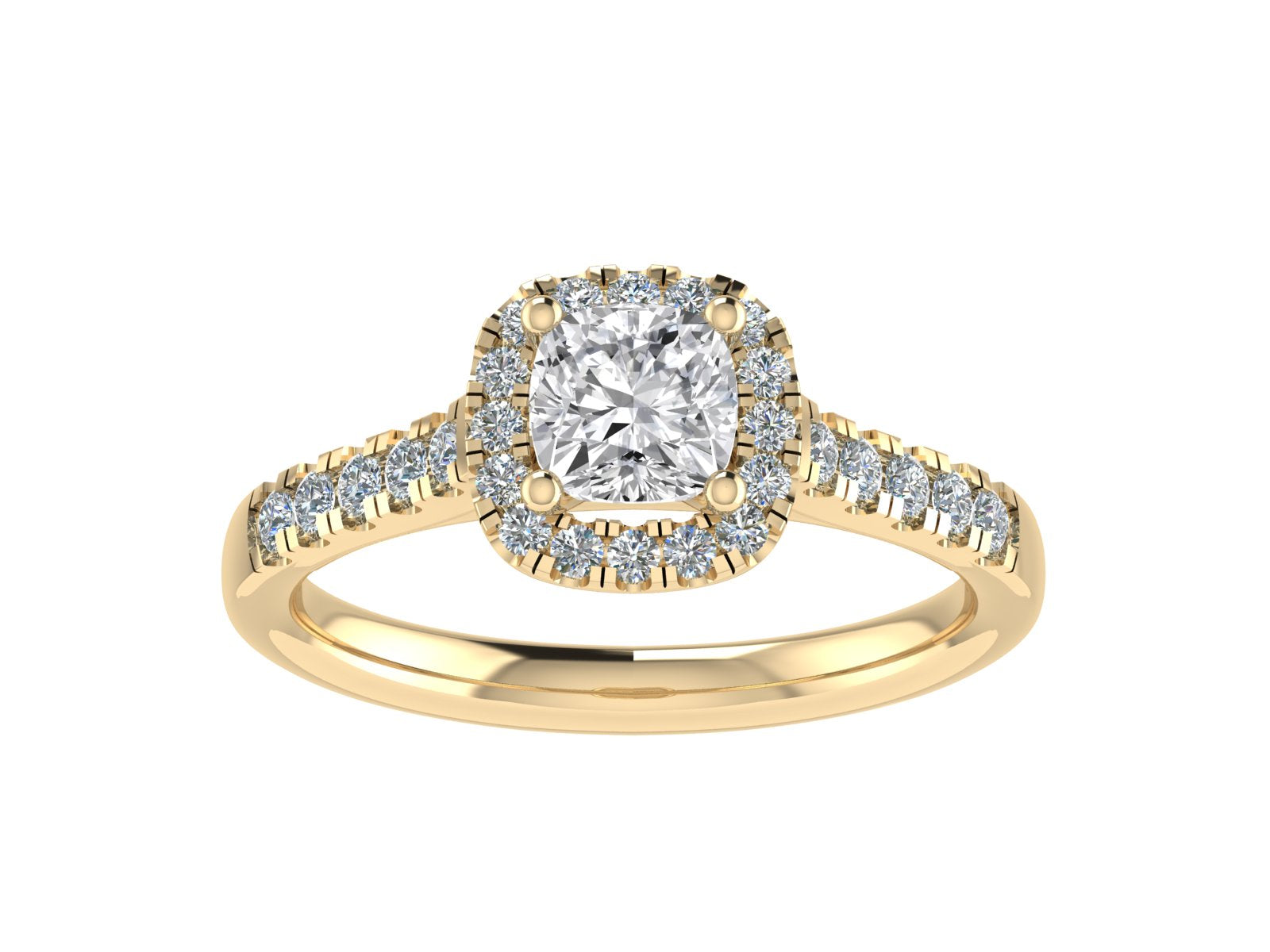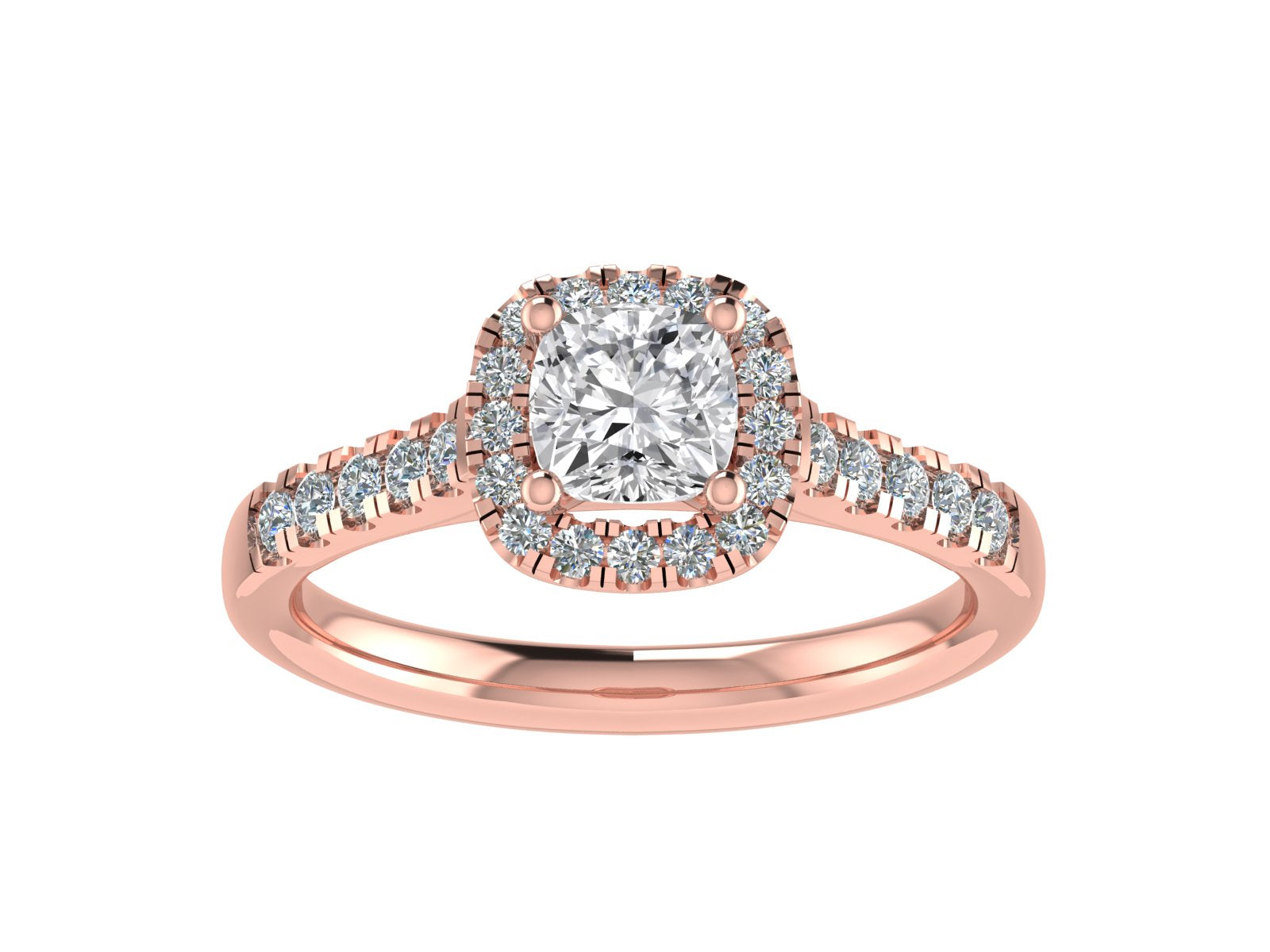 6mm Cushion Ring with Diamond Halo & Diamond set shoulders