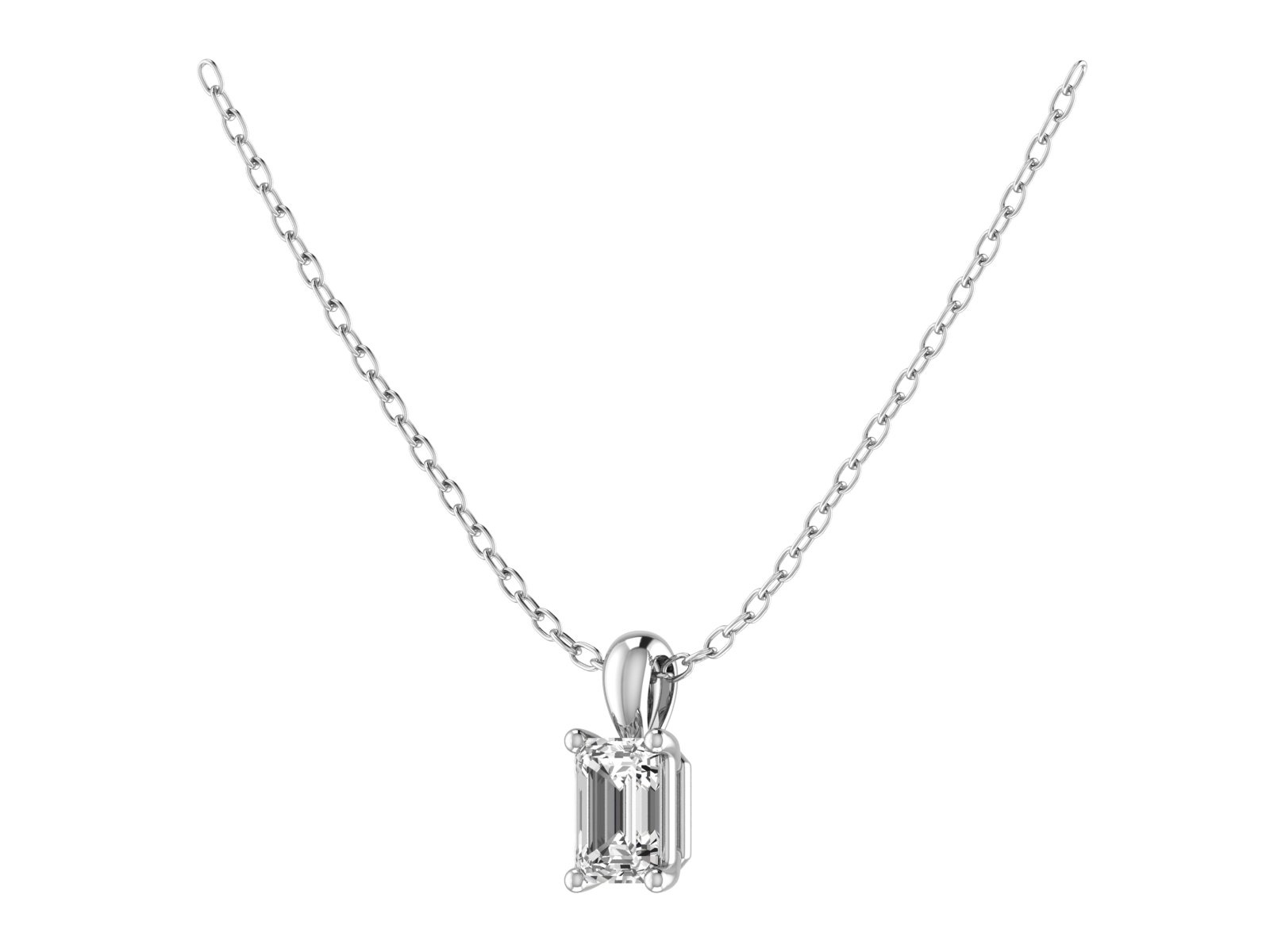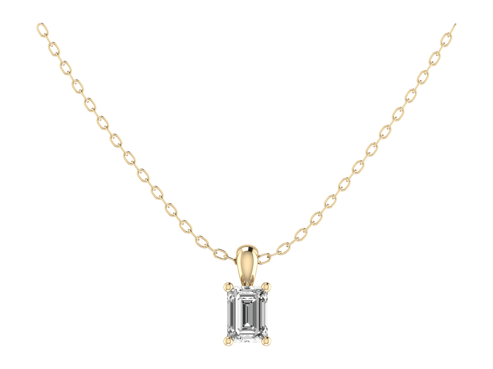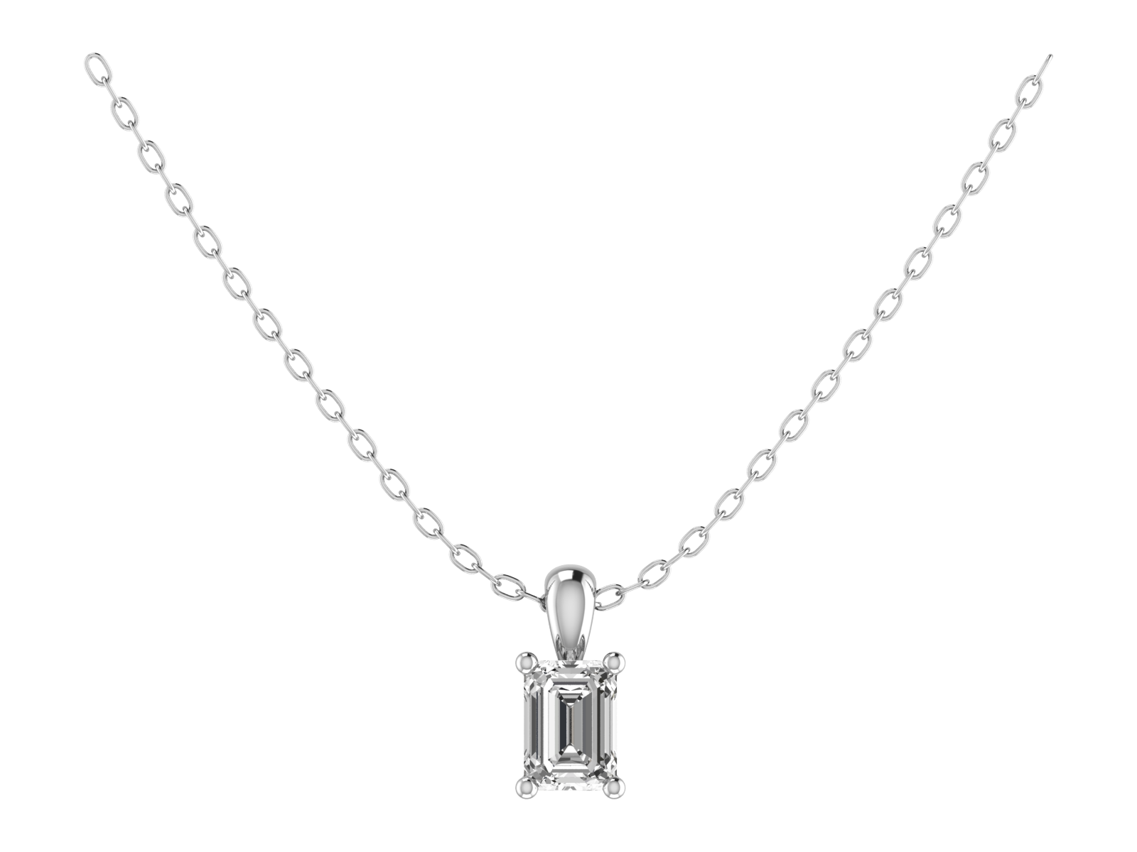 Our Classic Emerald Cut Pendant features a secure four-claw setting that gracefully protects and displays your gemstone. This exquisite design captures and reflects light beautifully, enhancing the natural brilliance of your emerald-cut stone. Perfect for any occasion, this pendant adds a touch of sophistication and luxury to your look.