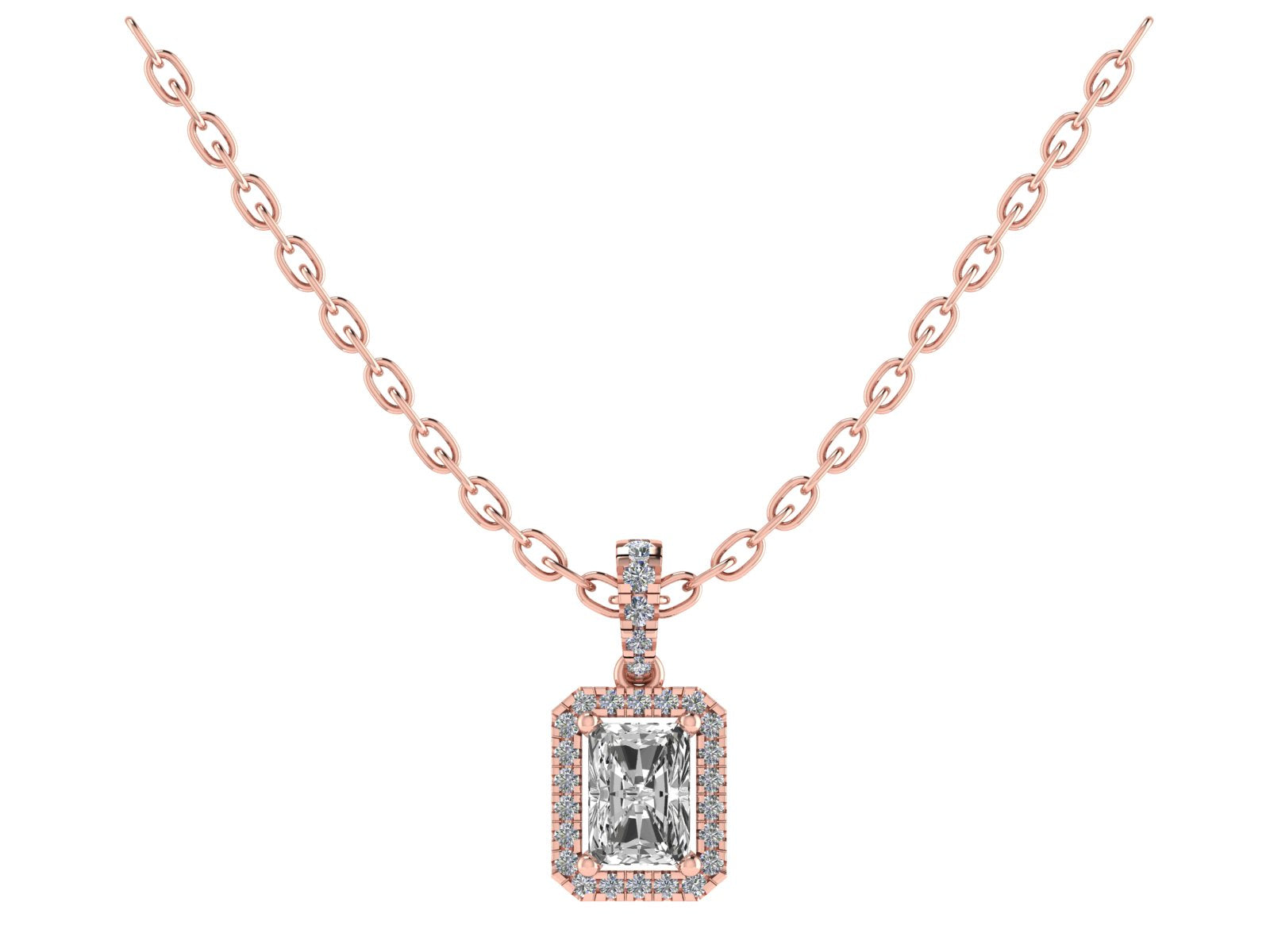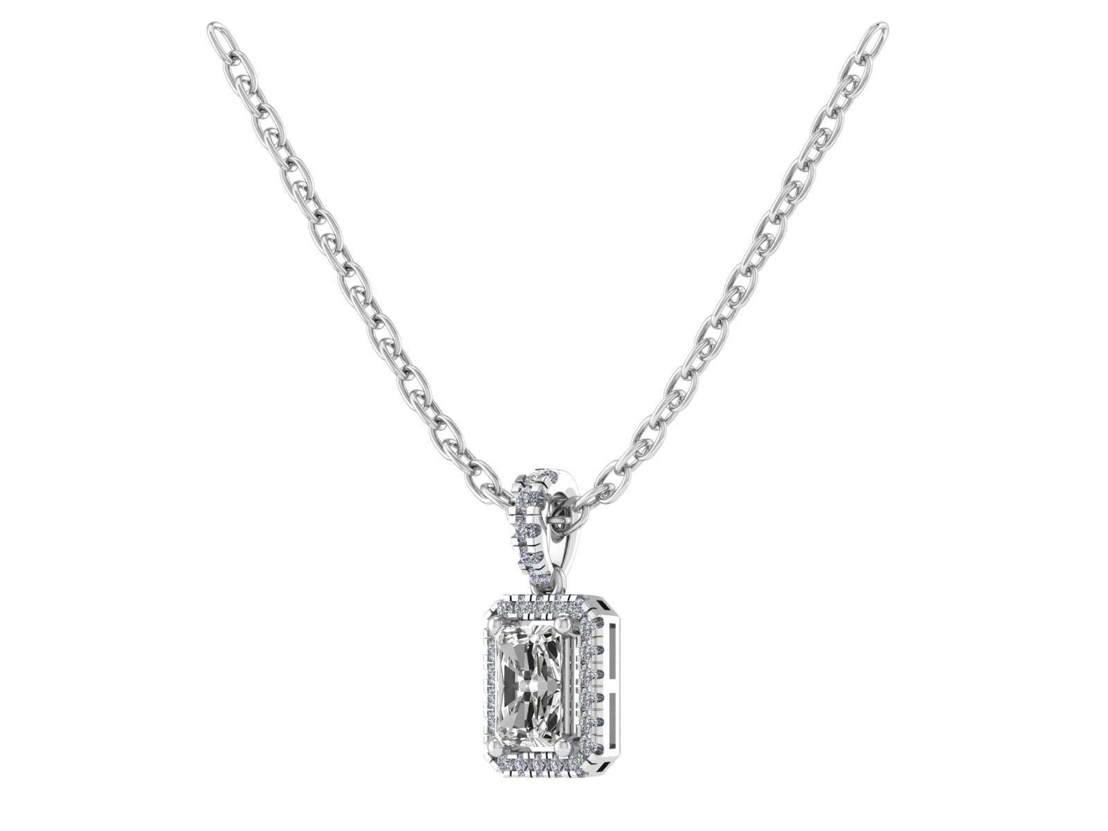 Emerald cut Four Claw Pendant with Diamond Set Halo and Bale 8x6